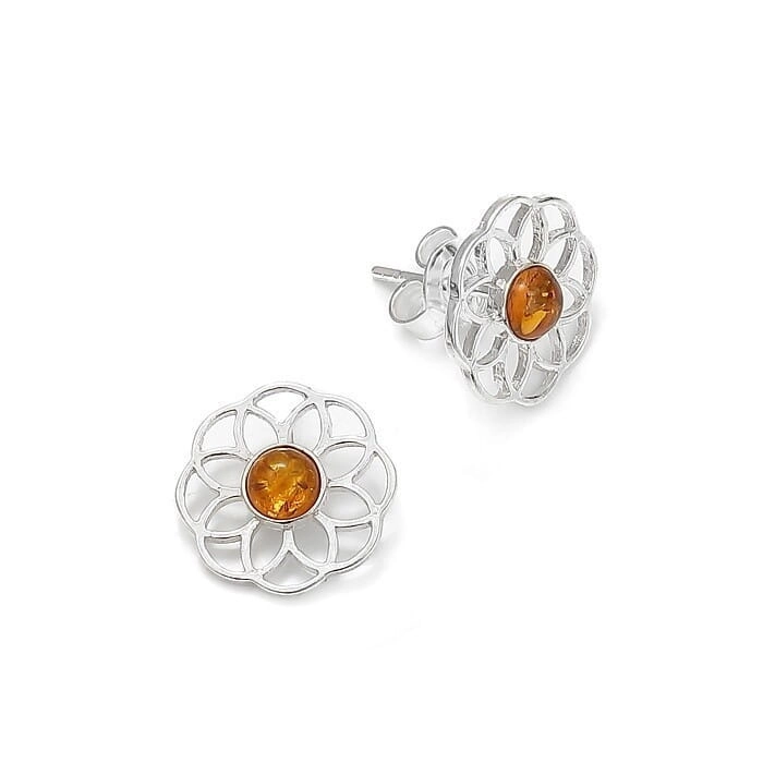 SREBRNE KOLCZYKI Z BURSZTYNKAMI