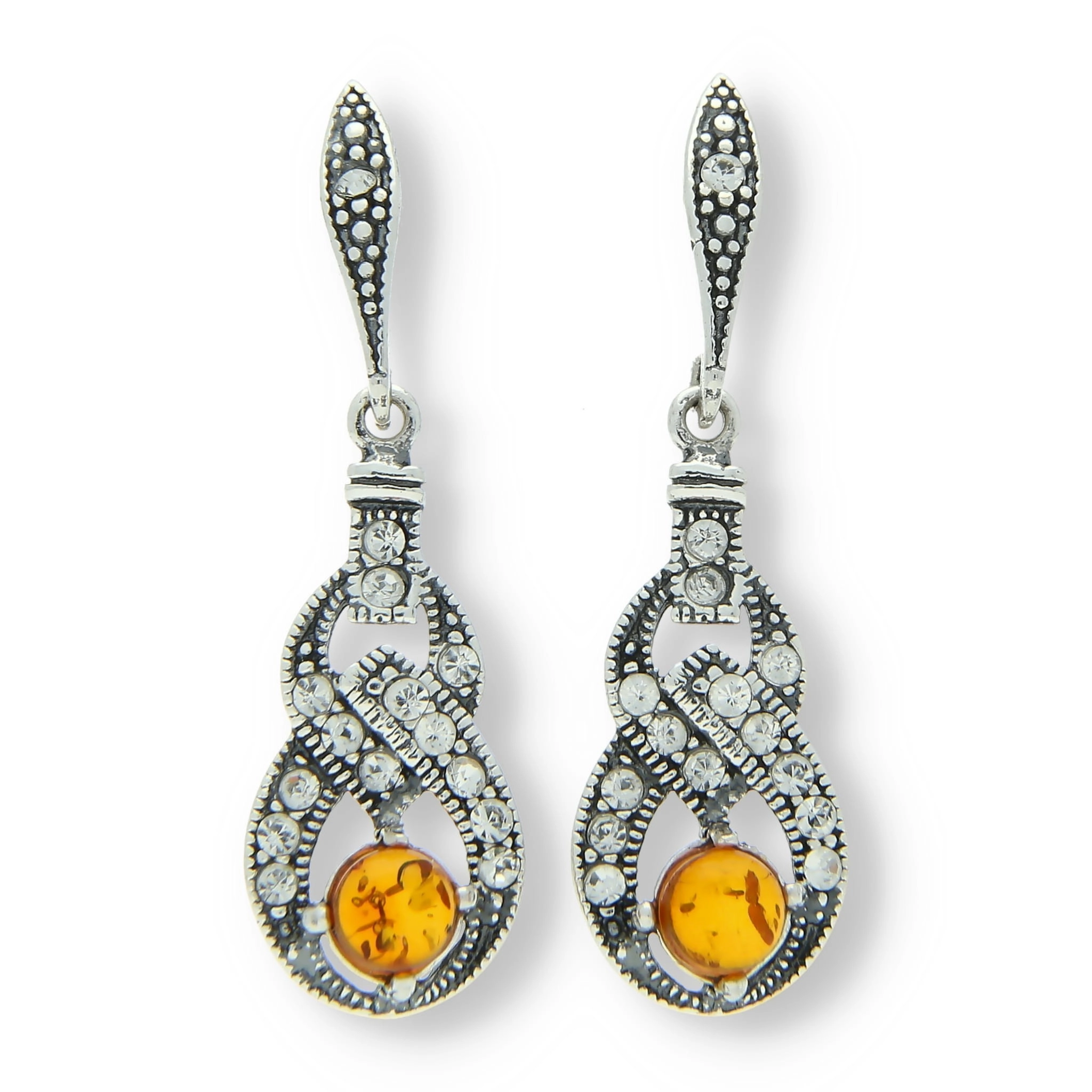 SREBRNE KOLCZYKI Z CYRKONIAMI SWAROVSKIEGO I BURSZTYNEM