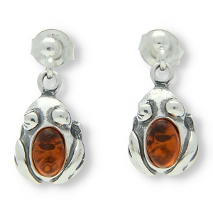 SREBRNE KOLCZYKI ŻABKI Z BURSZTYNEM