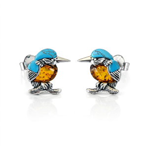 SREBRNE KOLCZYKI ZIMORODKI Z BURSZTYNEM