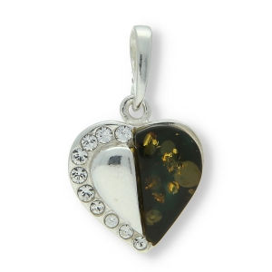 SREBRNE WISIOREK SERCE Z BURSZTYNEM