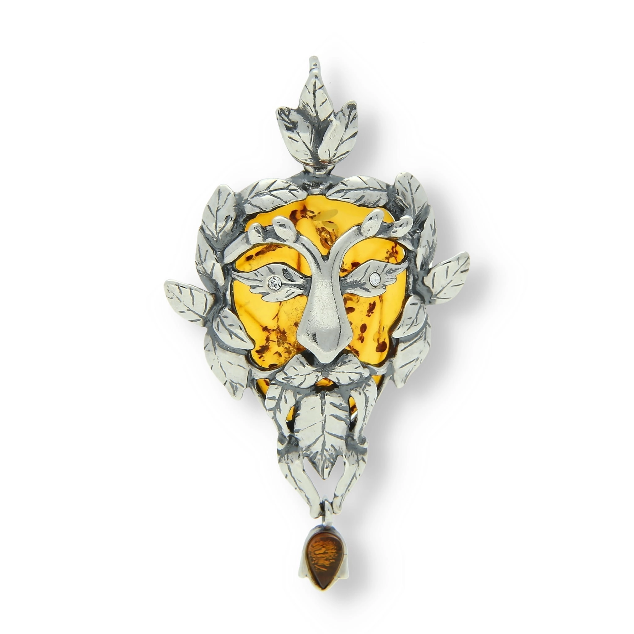 SREBRNY WISIOR GREEN MAN Z BURSZTYNEM