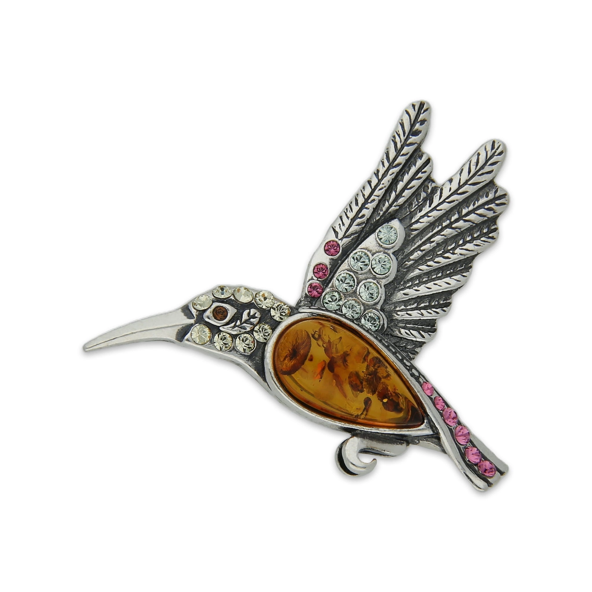 SREBRNY WISIOR KOLIBER Z BURSZTYNEM