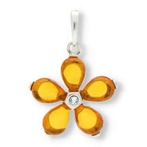 SREBRNY WISIOR KWIATEK Z BURSZTYNEM