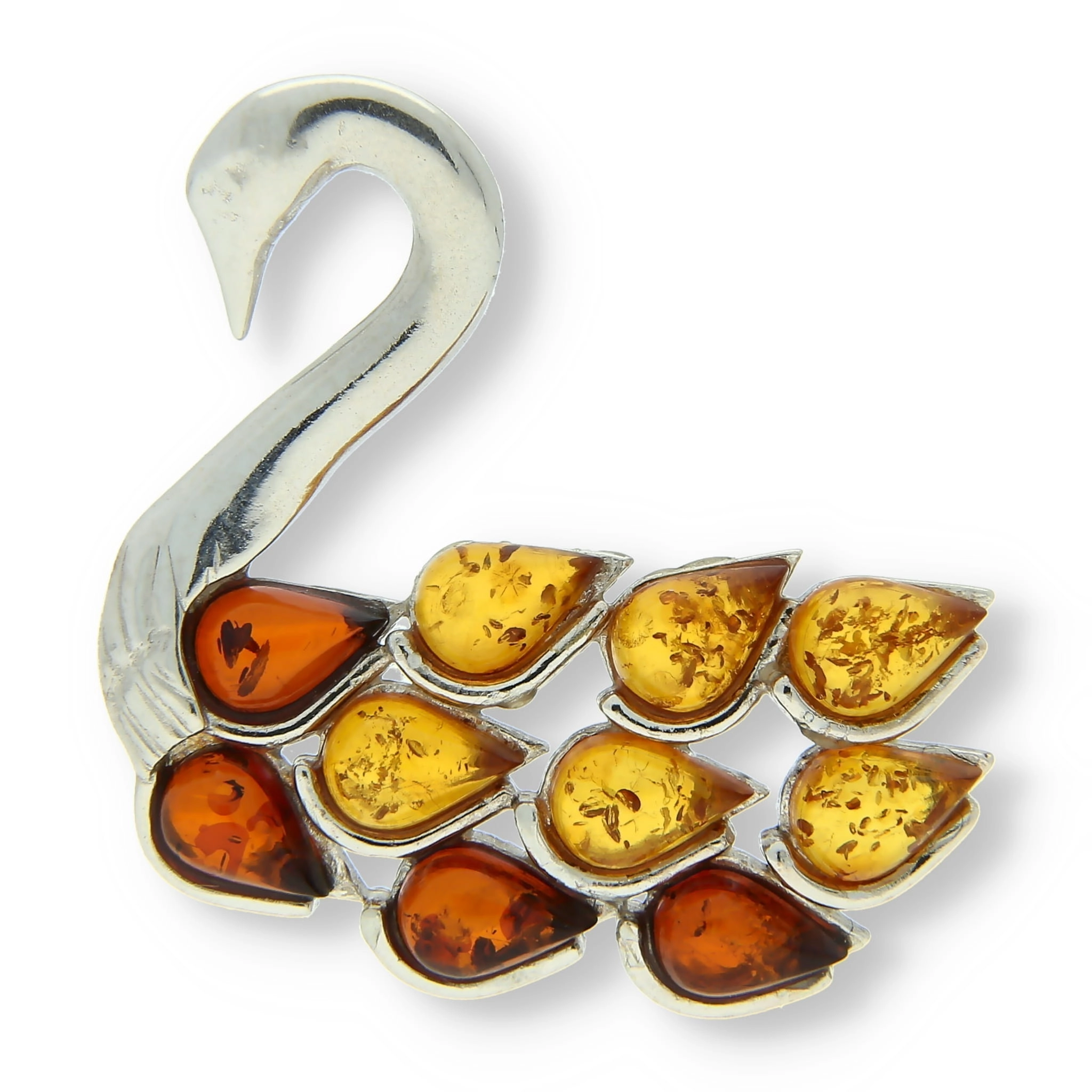 SREBRNY WISIOR ŁABĘDŹ Z BURSZTYNEM