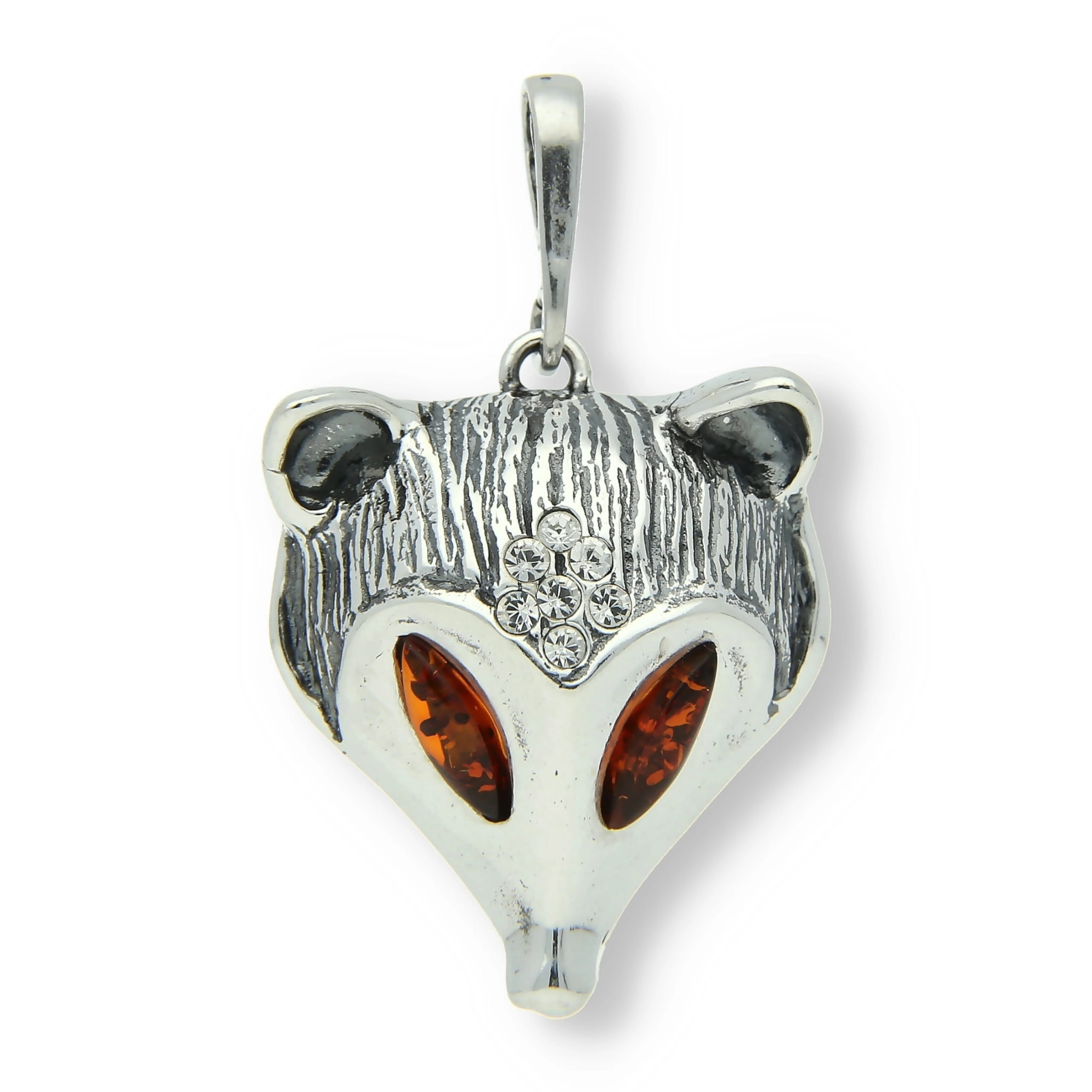 SREBRNY WISIOR LIS Z BURSZTYNEM