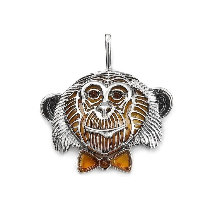 SREBRNY WISIOR MAŁPKA Z BURSZTYNEM