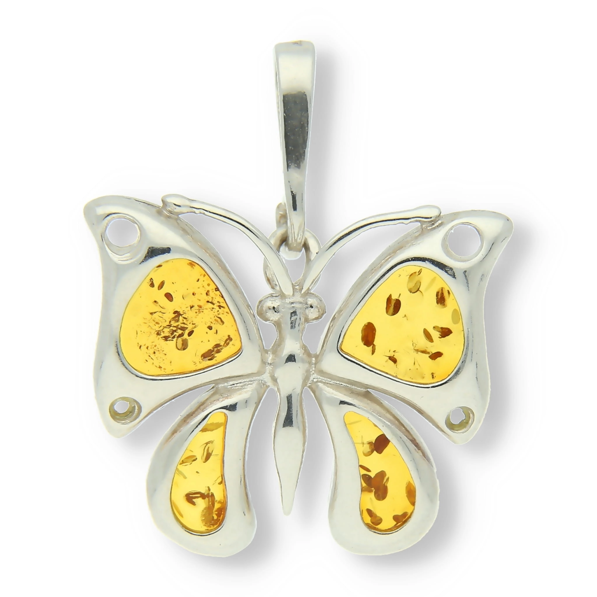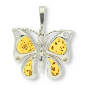 SREBRNY WISIOR MOTYLEK Z BURSZTYNEM