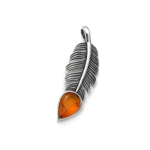 SREBRNY WISIOR PIÓRO Z BURSZTYNEM