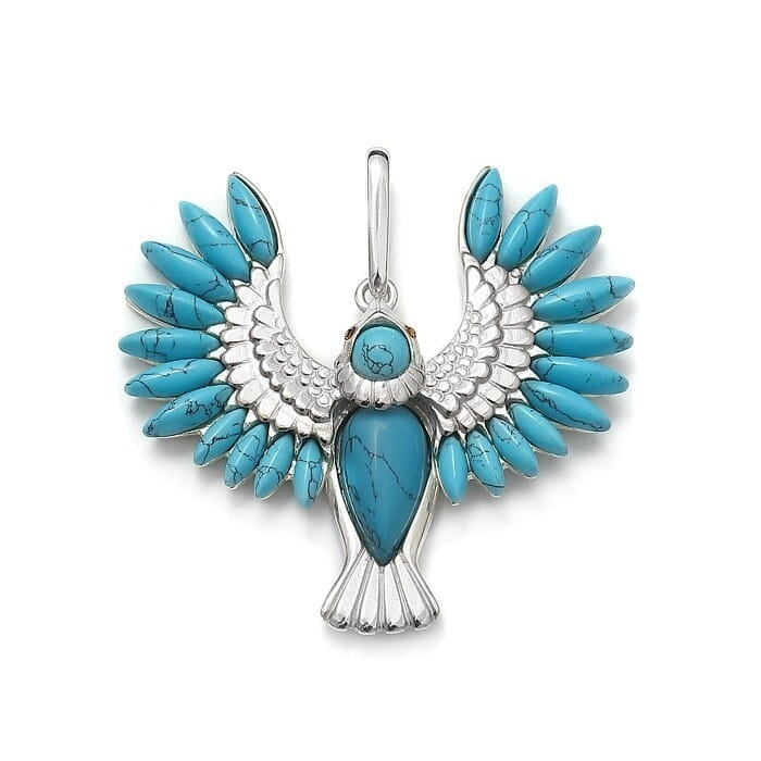 SREBRNY WISIOR PTAK Z BURSZTYNEM