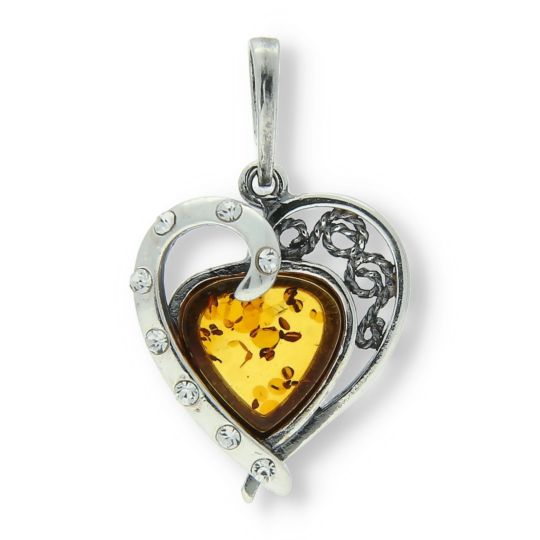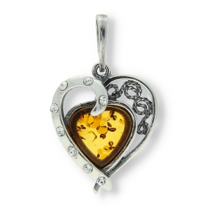 SREBRNY WISIOR SERCE Z BURSZTYNEM