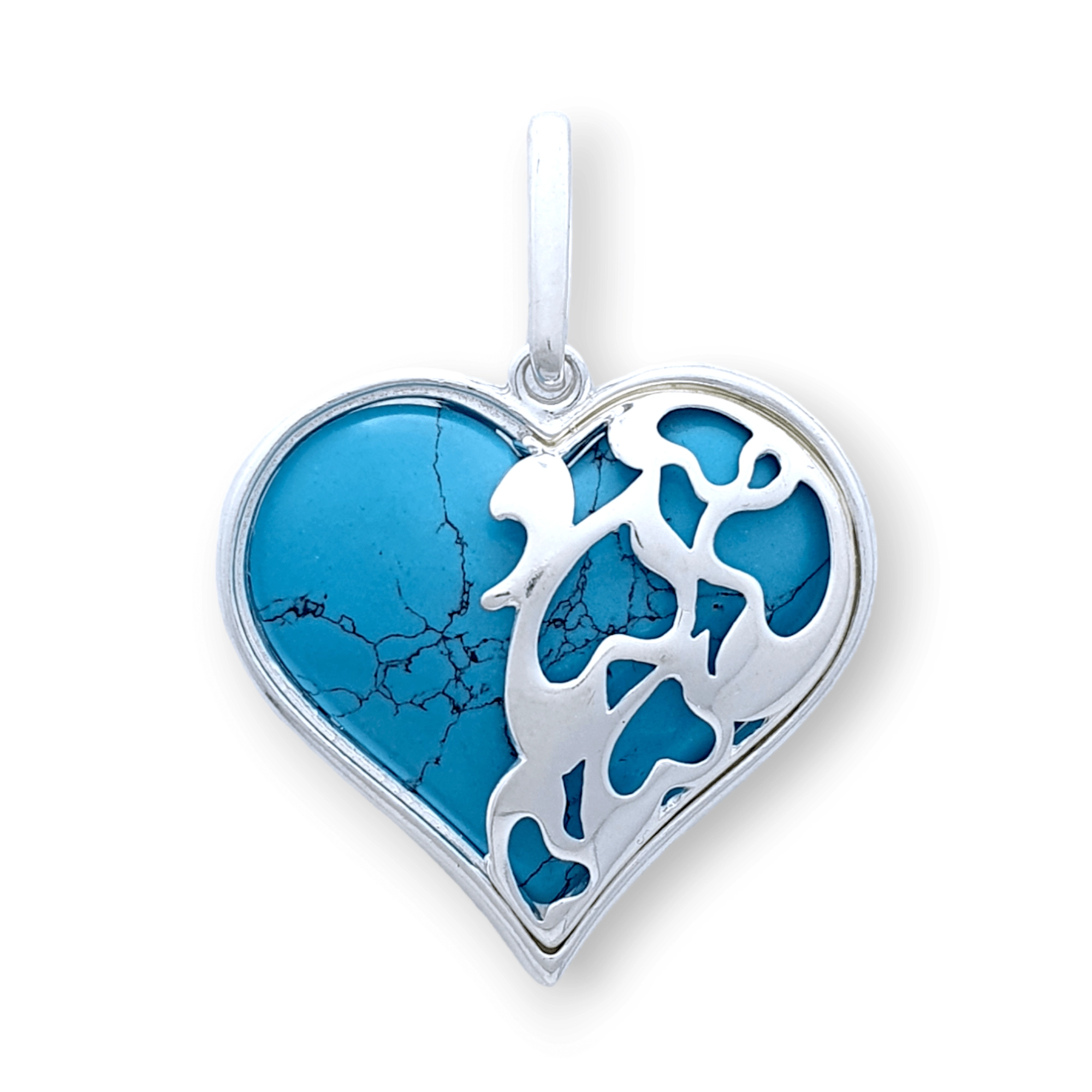SREBRNY WISIOR SERCE Z TURKUSEM