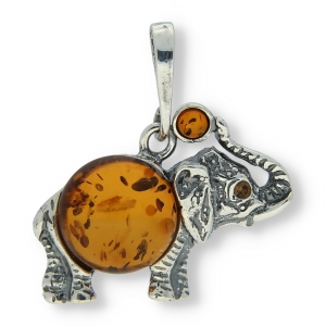 SREBRNY WISIOR SŁOŃ Z BURSZTYNEM