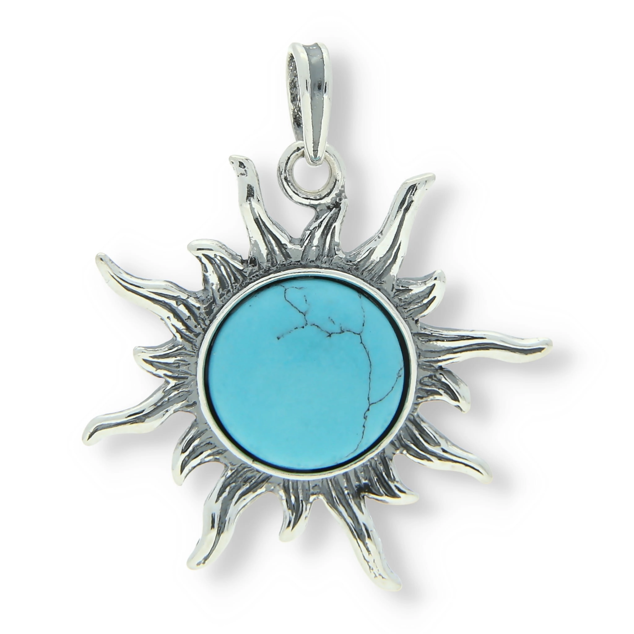 SREBRNY WISIOR SŁOŃCE Z TURKUSEM