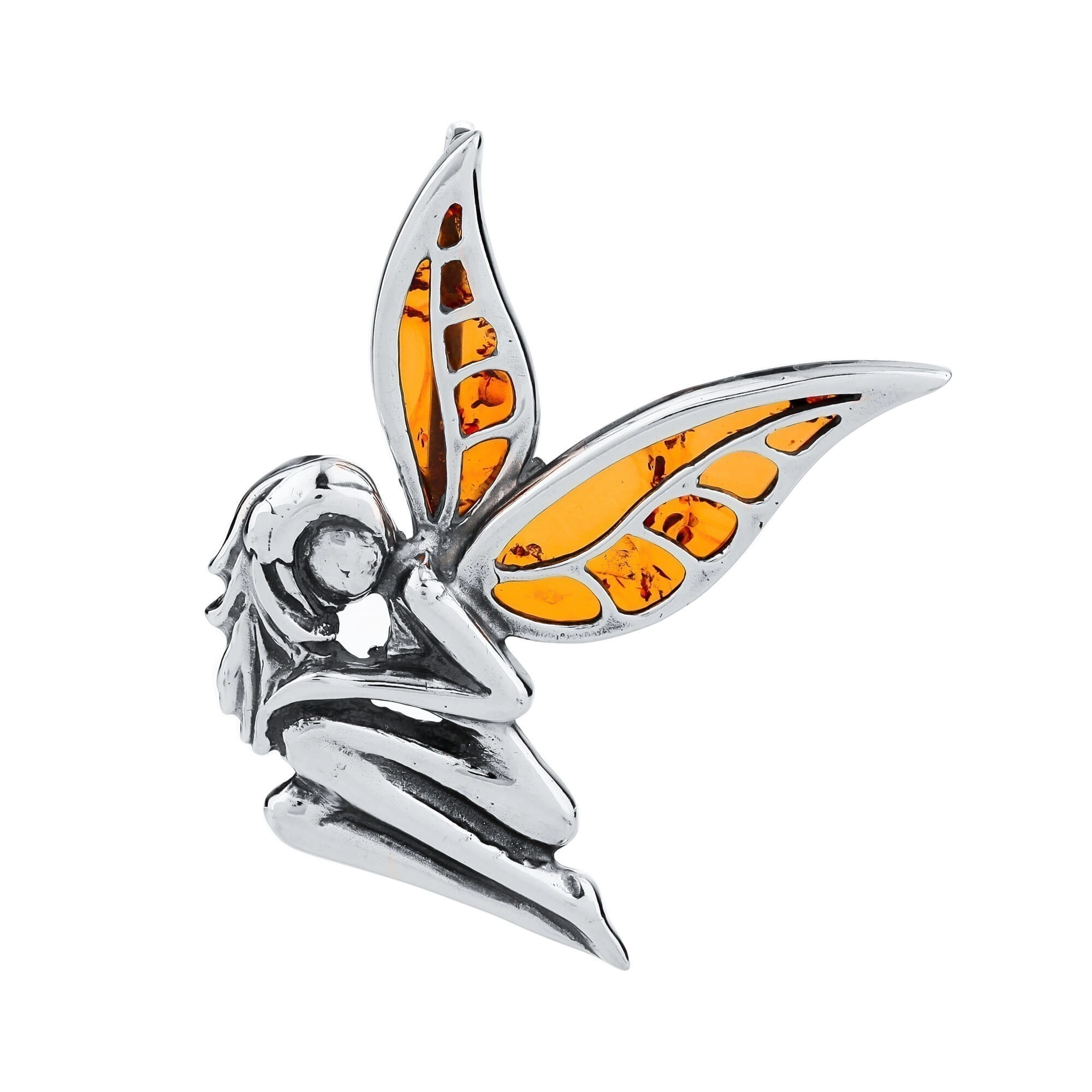 SREBRNY WISIOR WRÓŻKA Z BURSZTYNEM
