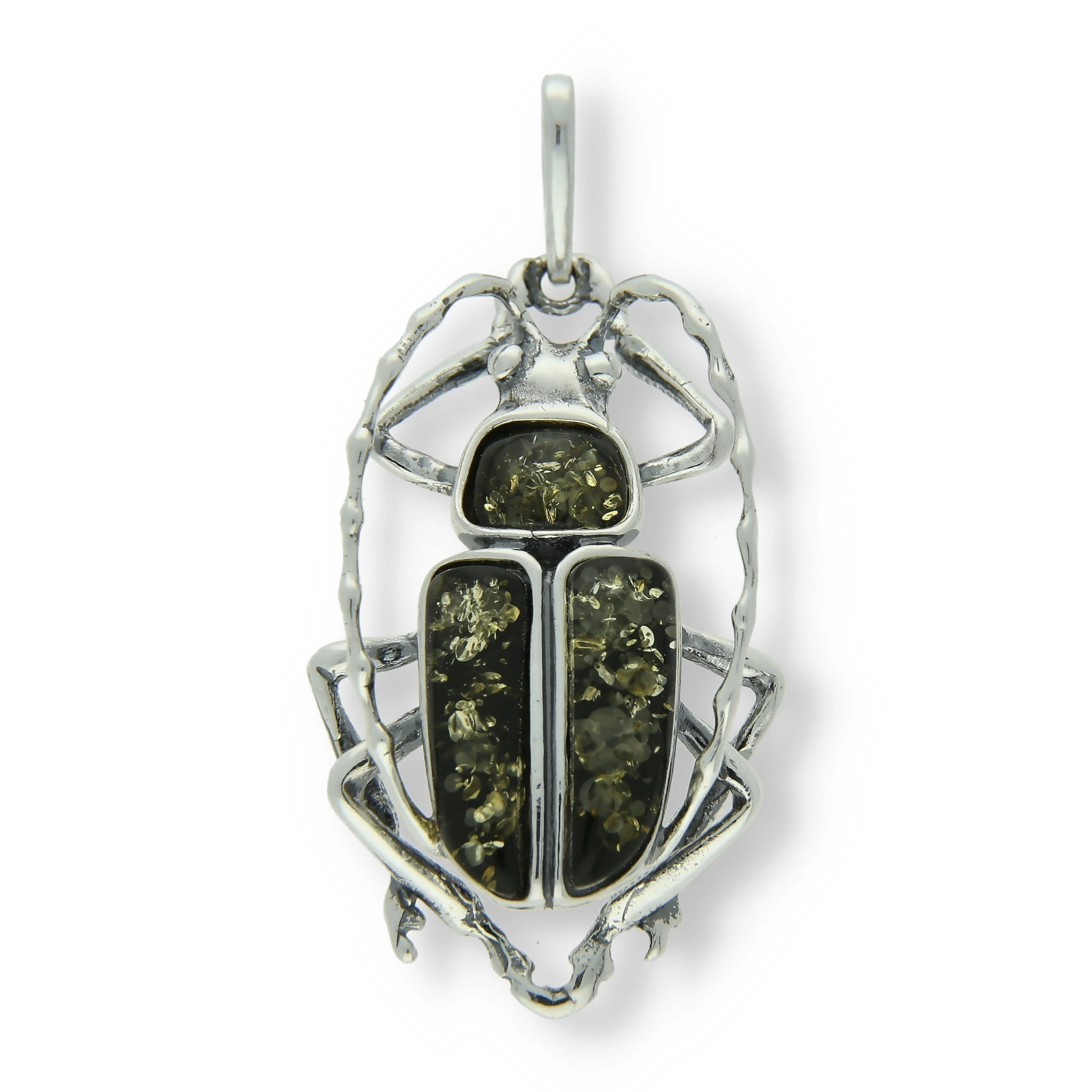 SREBRNY WISIOR ŻUK Z BURSZTYNEM