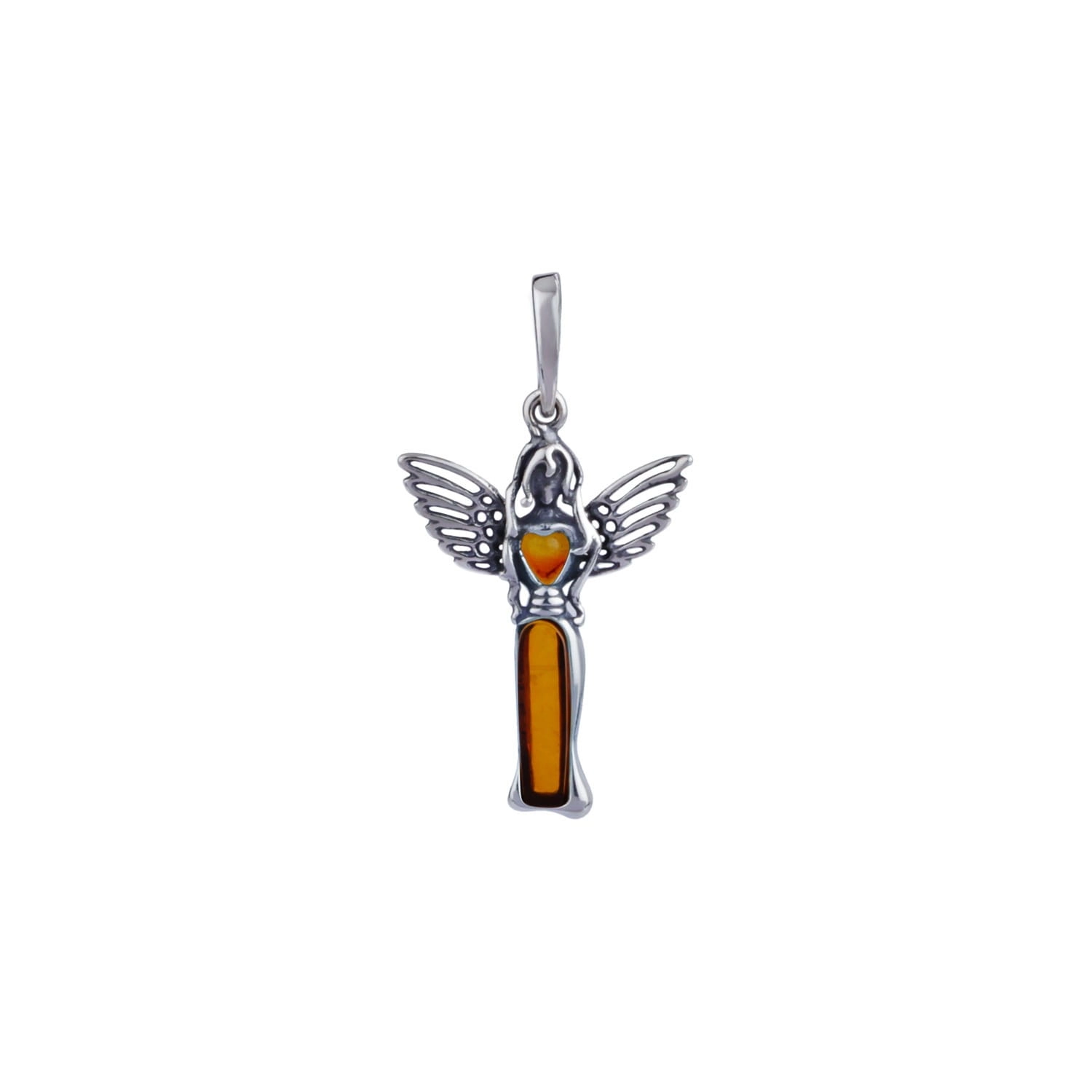 SREBRNY WISIOREK ANIOŁ Z BURSZTYNEM