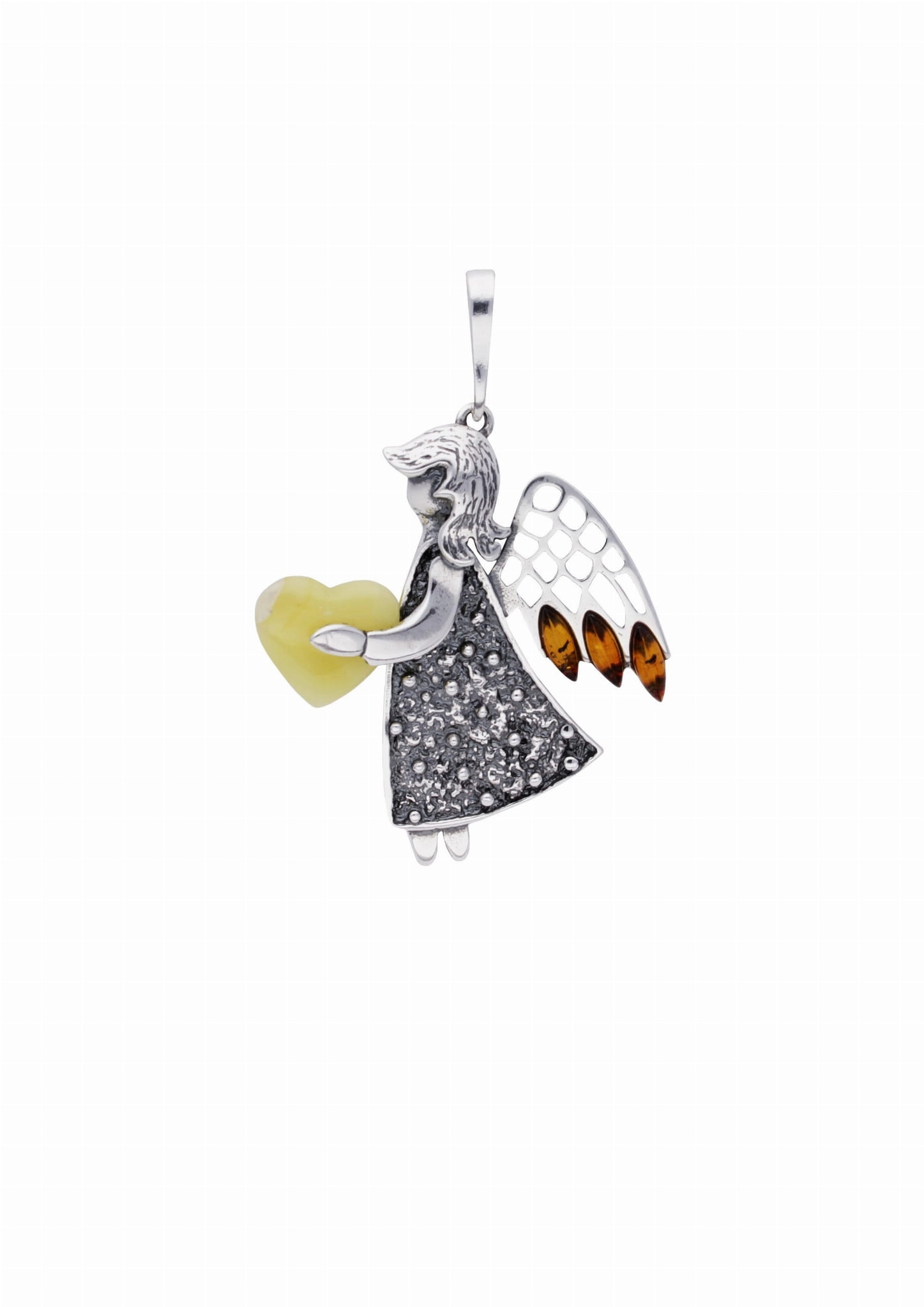 SREBRNY WISIOREK ANIOŁEK Z BURSZTYNEM