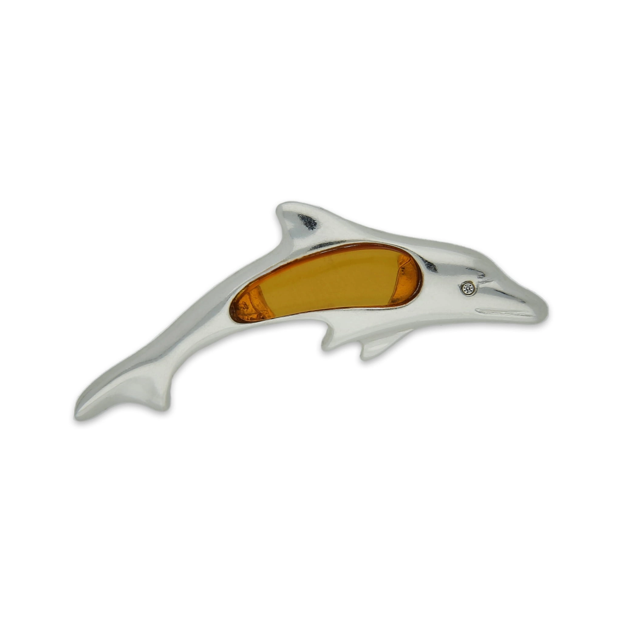 SREBRNY WISIOREK DELFIN Z BURSZTYNEM