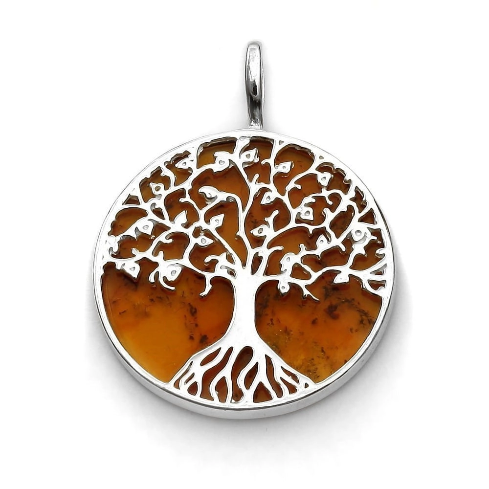 SREBRNY WISIOREK DRZEWO Z BURSZTYNEM