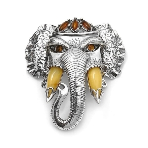 SREBRNY WISIOREK GŁOWA SŁONIA Z BURSZTYNEM