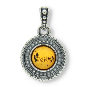 SREBRNY WISIOREK KOŁO Z BURSZTYNEM
