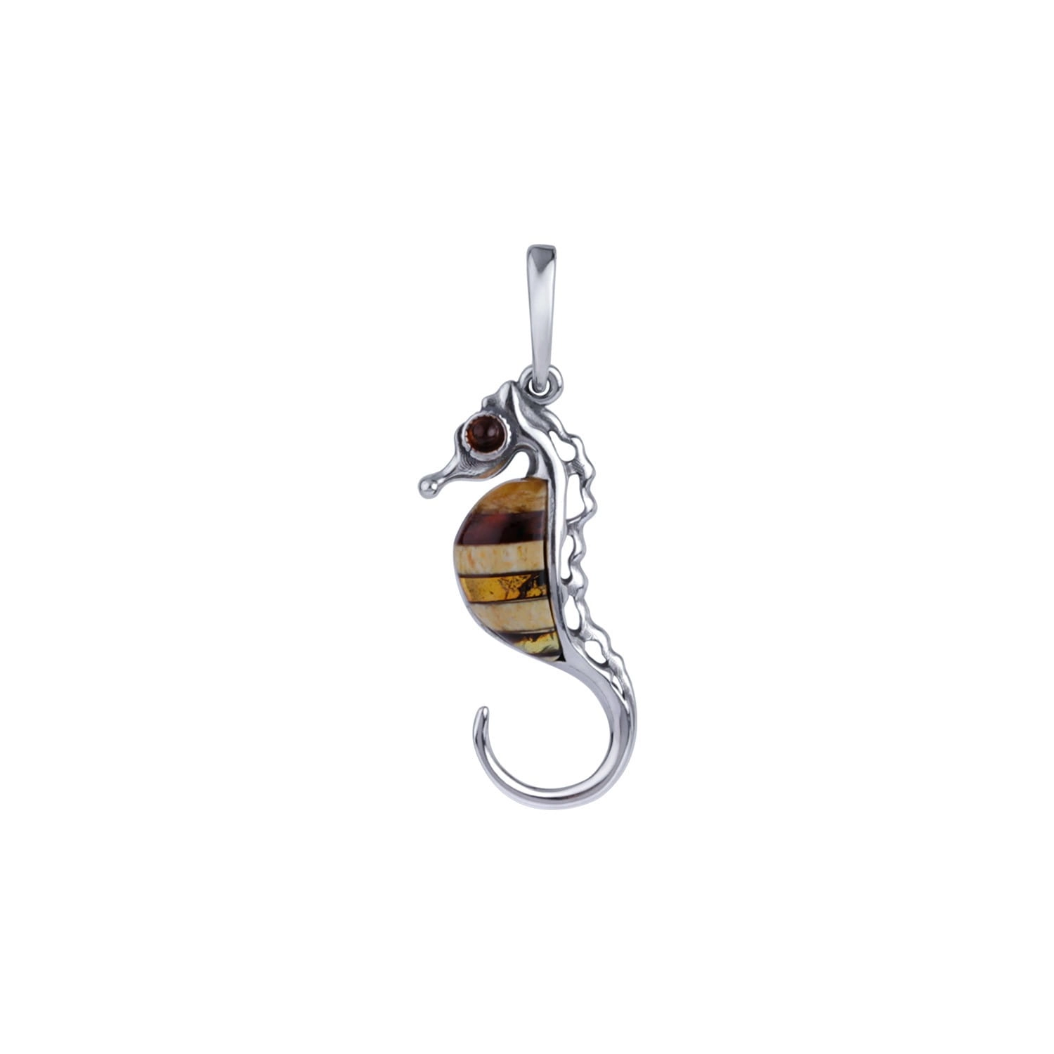 SREBRNY WISIOREK KONIK MORSKI Z BURSZTYNEM