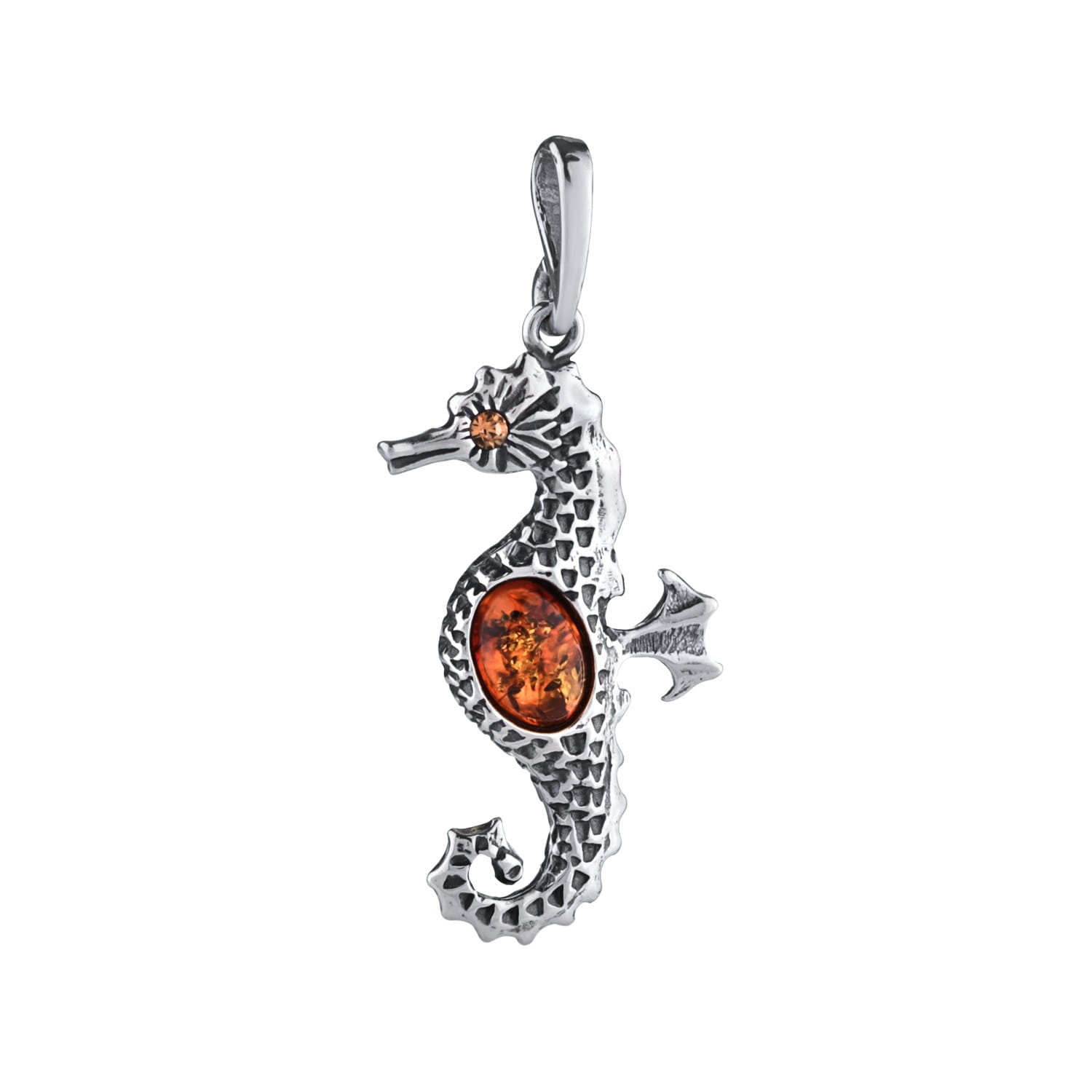 SREBRNY WISIOREK KONIK MORSKI Z BURSZTYNEM