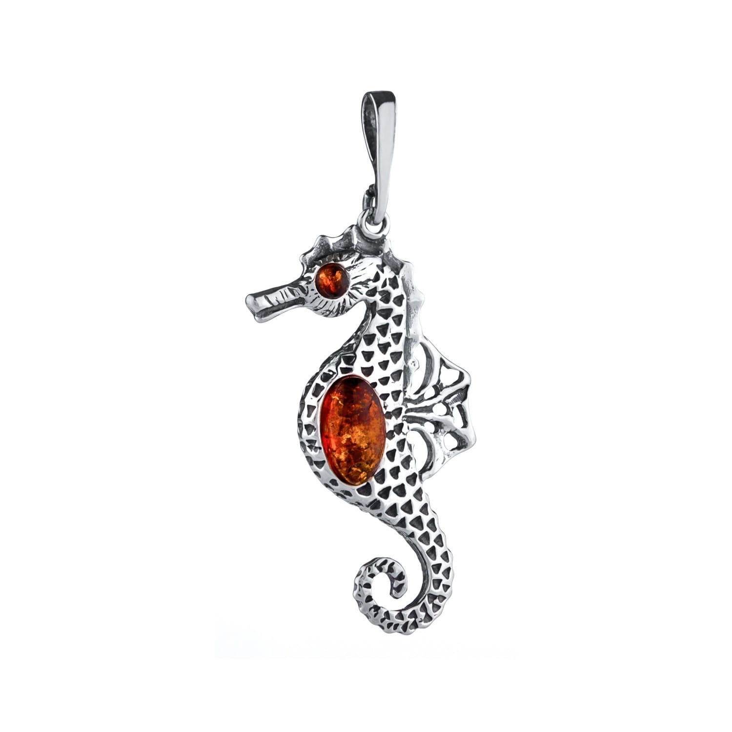 SREBRNY WISIOREK KONIK MORSKI Z BURSZTYNEM