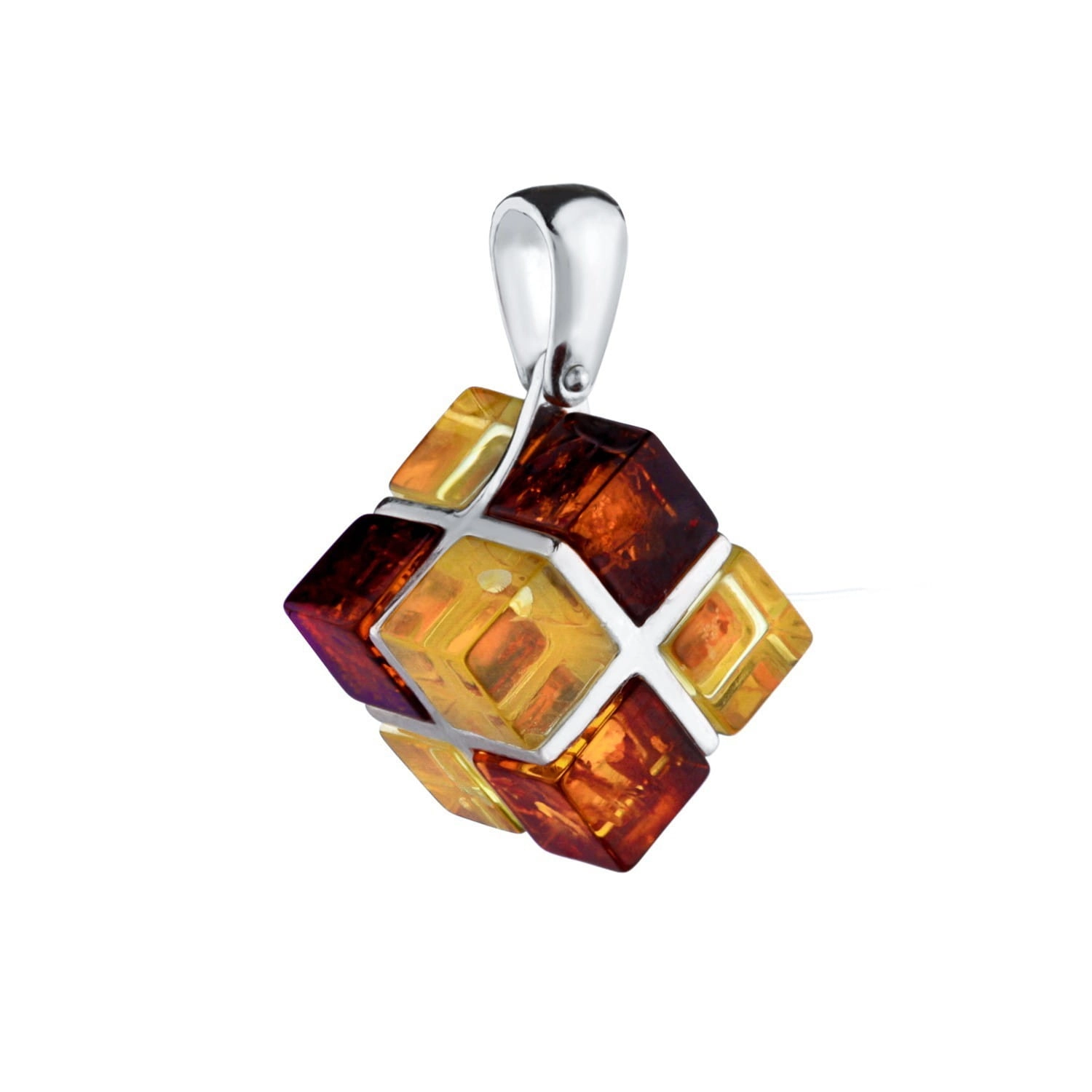 SREBRNY WISIOREK KOSTKA Z BURSZTYNEM