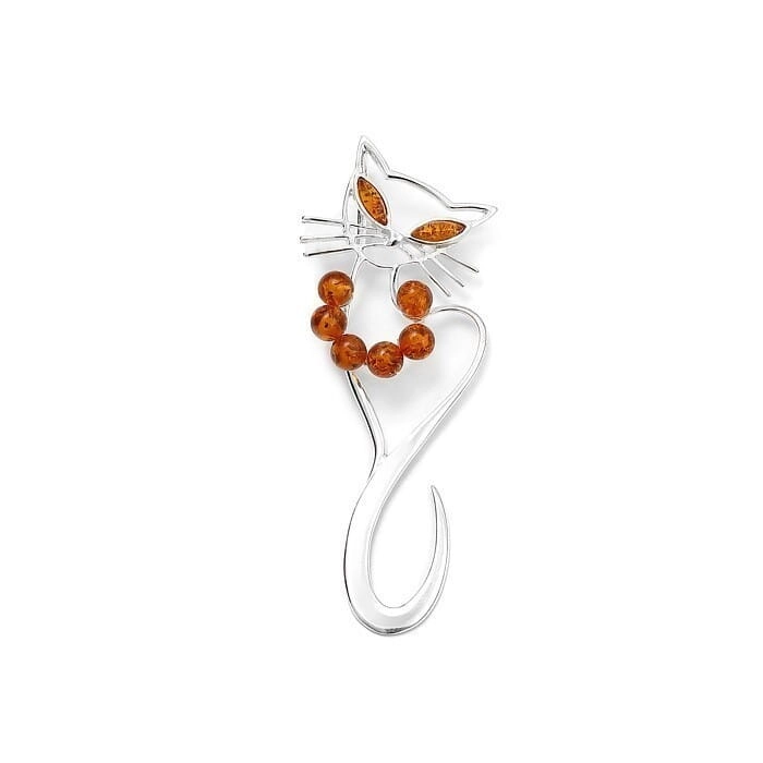 SREBRNY WISIOREK KOT Z BURSZTYNEM