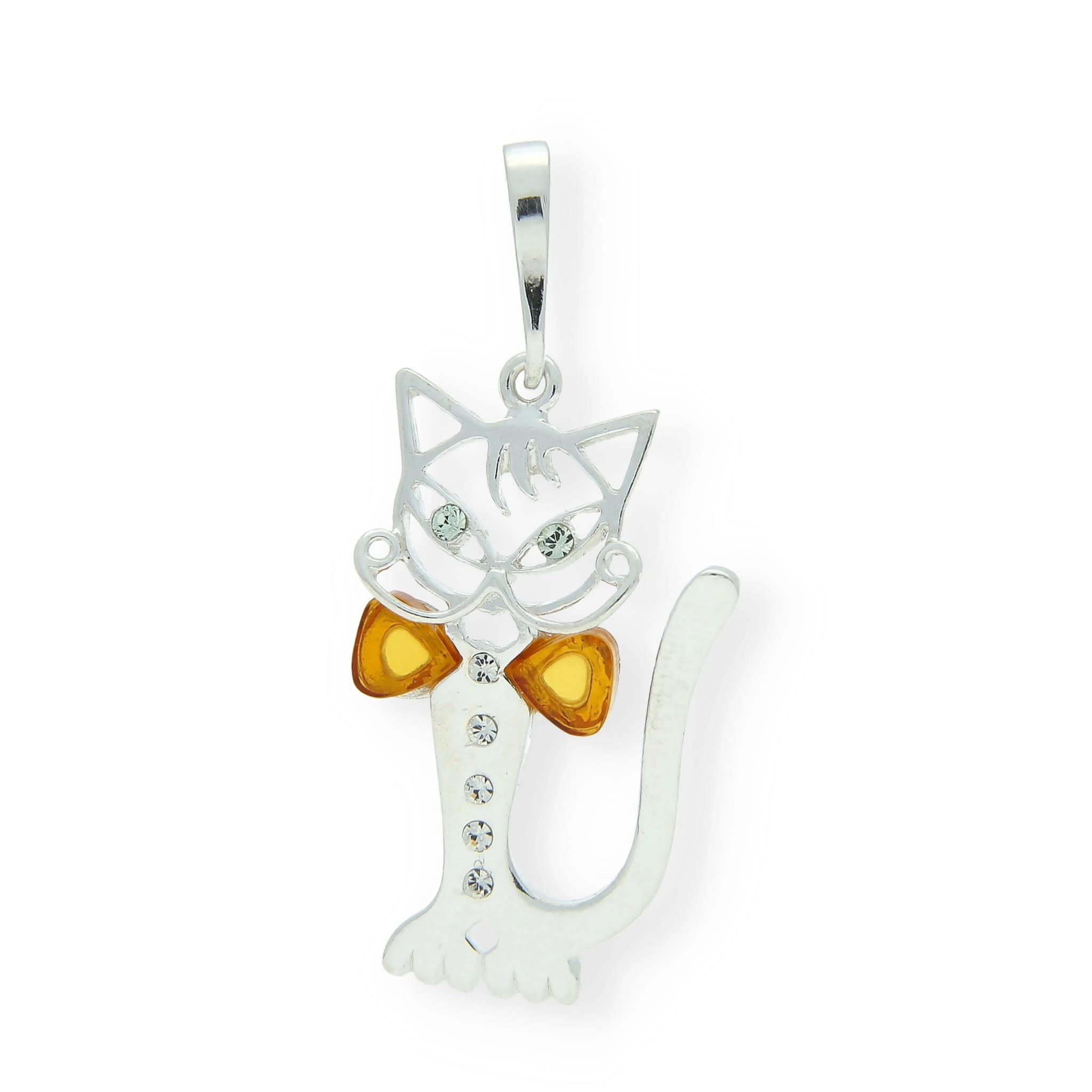 SREBRNY WISIOREK KOT Z MUCHĄ BURSZTYNOWĄ