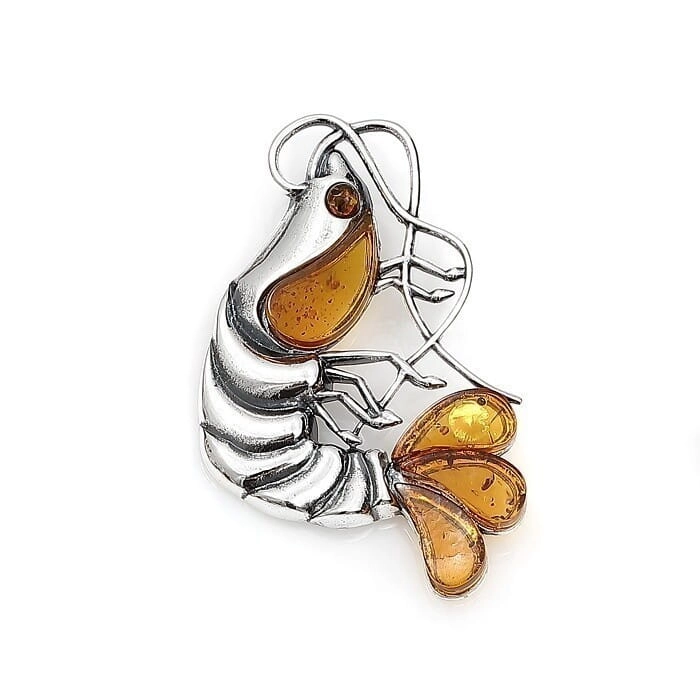 SREBRNY WISIOREK KREWETKA Z BURSZTYNEM