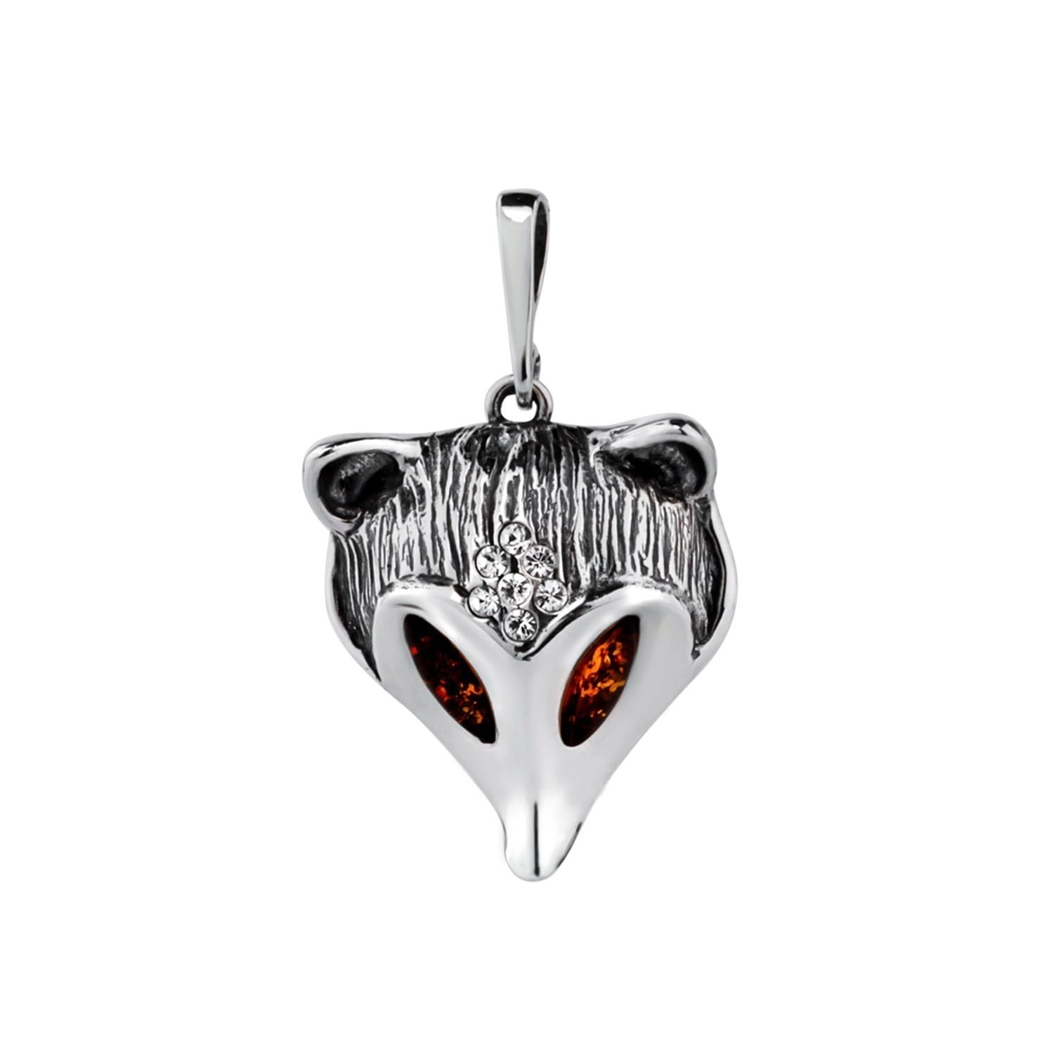 SREBRNY WISIOREK LIS Z BURSZTYNEM