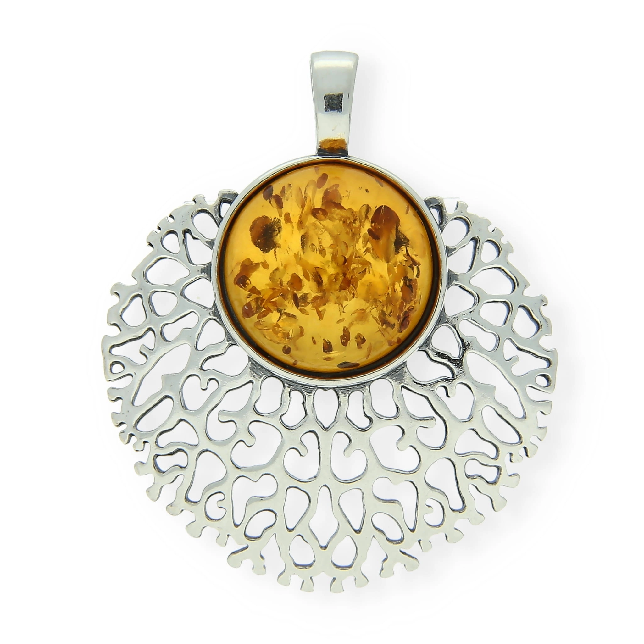 Srebrny uroczy wisiorek z bursztynem, którego wspaniale wykończony kamień przyciąga spojrzenia. Złoto bałtyku może przybierać wiele barw. Dzięki temu każdy może dobrać Swój wymarzony kolor, spełniający fantazje najbardziej wymagających konsumentów !