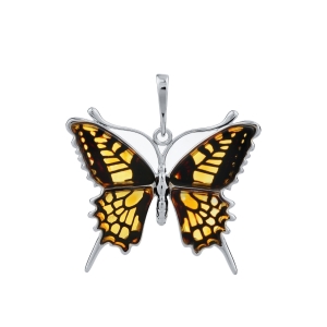SREBRNY WISIOREK MOTYL PAŹ KRÓLOWEJ Z BURSZTYNEM