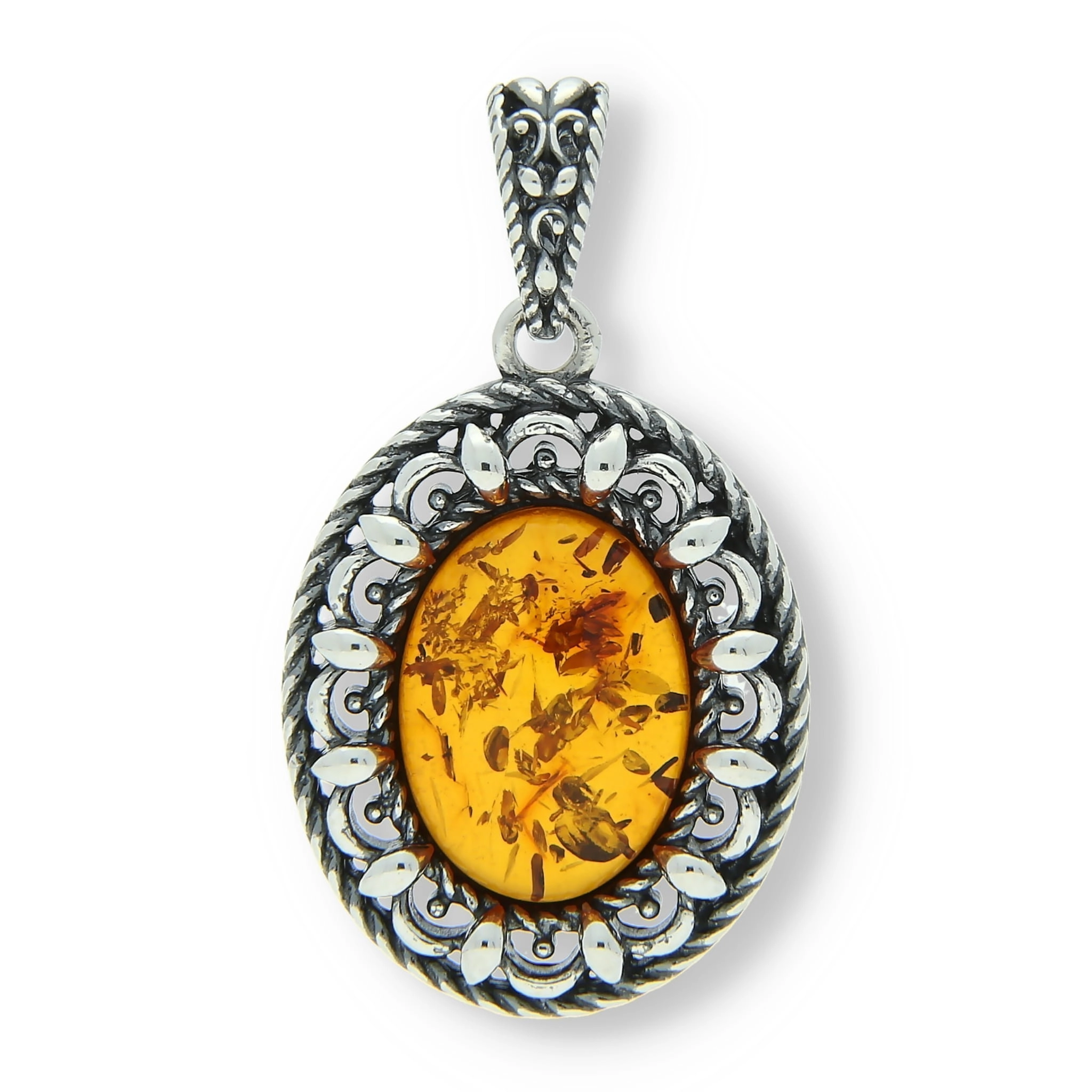 SREBRNY WISIOREK OWAL Z BURSZTYNEM