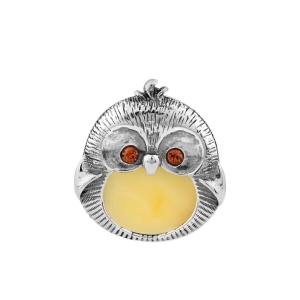 SREBRNY WISIOREK PINGWINEK Z BURSZTYNEM