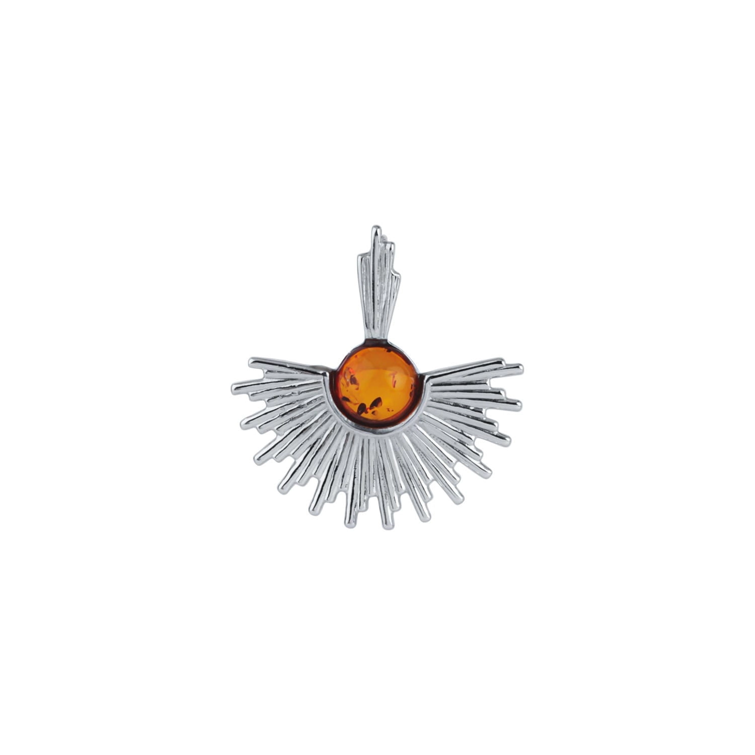 SREBRNY WISIOREK PÓŁ SŁOŃCE Z BURSZTYNEM