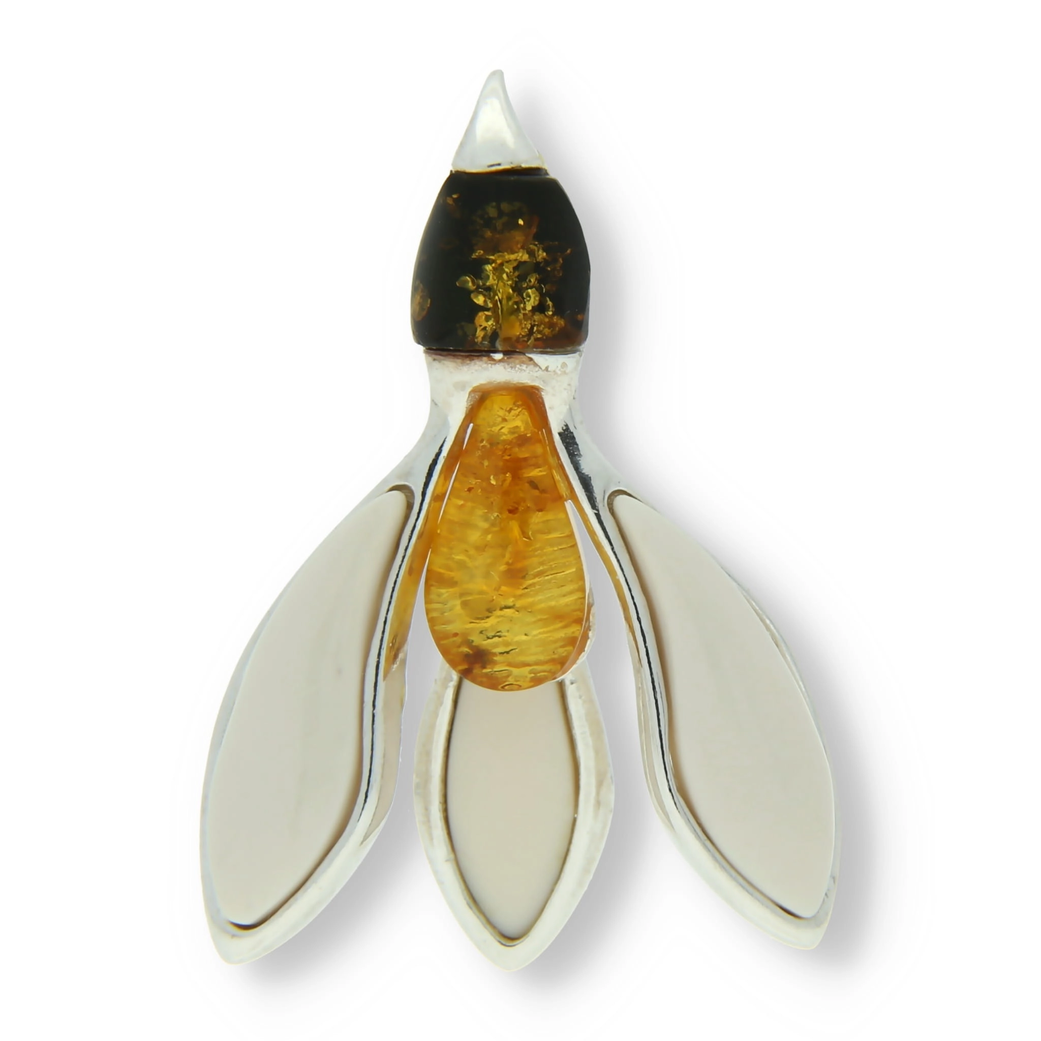 SREBRNY WISIOREK PRZEBIŚNIEG Z BURSZTYNEM