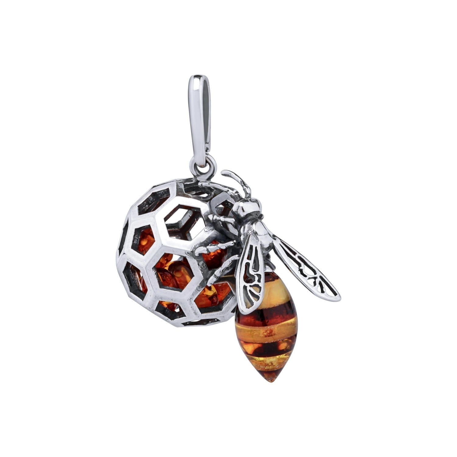 SREBRNY WISIOREK PSZCZOŁA Z BURSZTYNEM