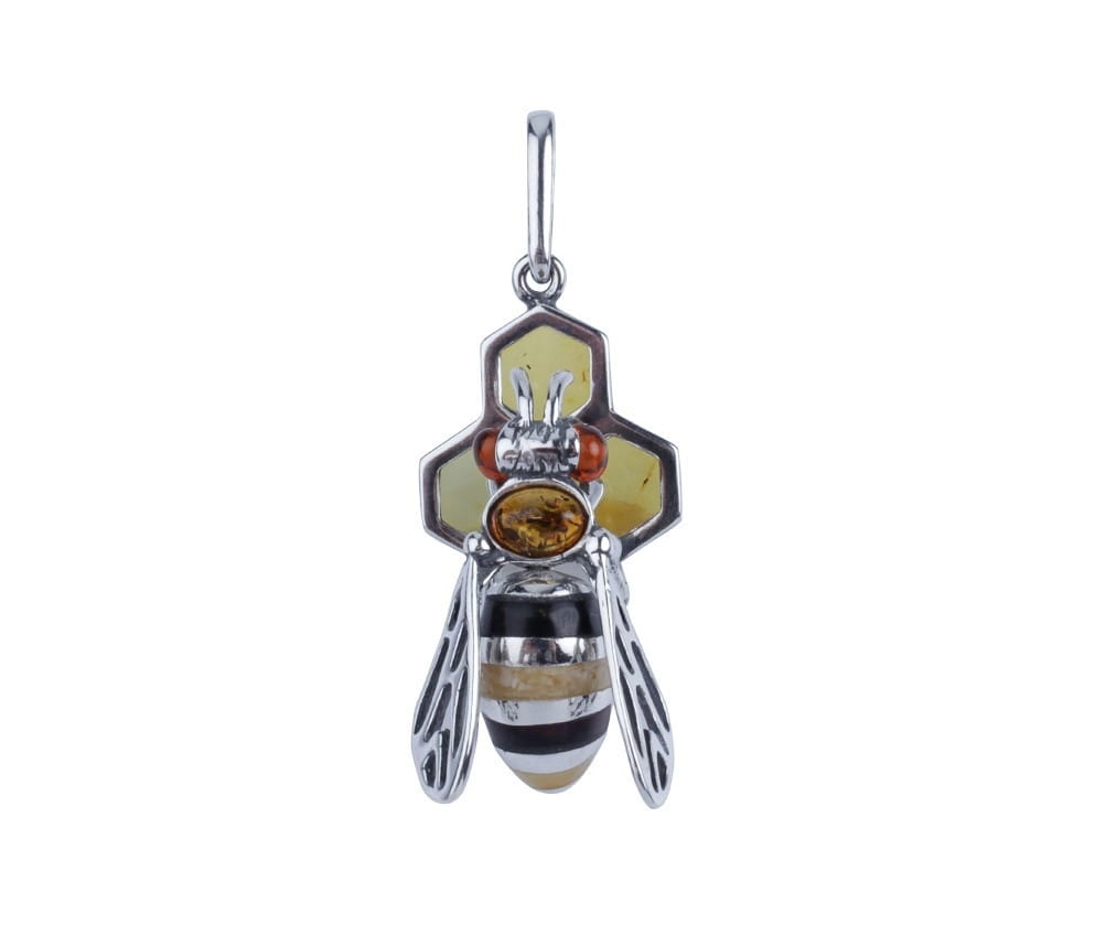 SREBRNY WISIOREK PSZCZOŁA Z BURSZTYNEM