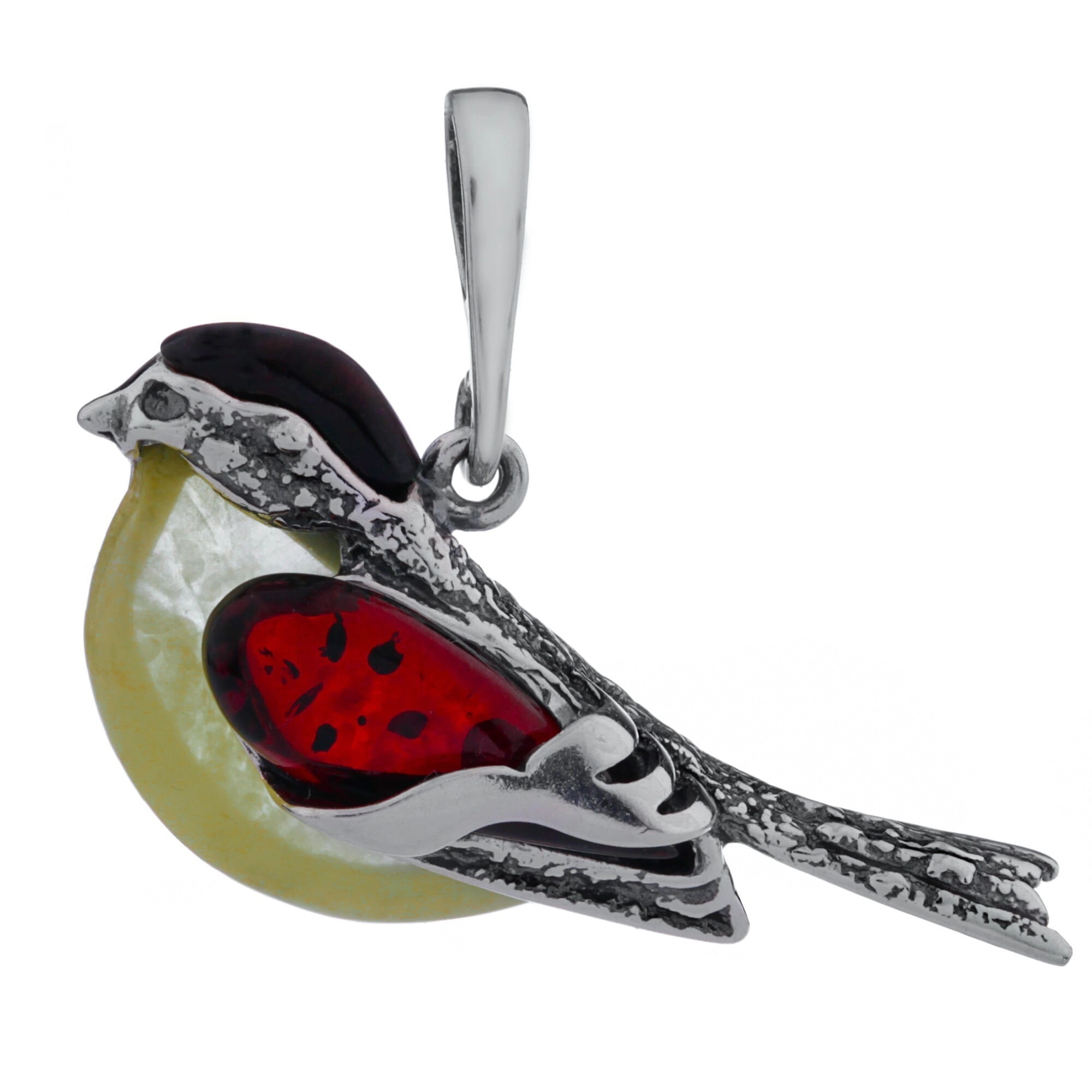 SREBRNY WISIOREK PTASZEK MUCHOŁÓWKA Z KORALEM I BURSZTYNEM