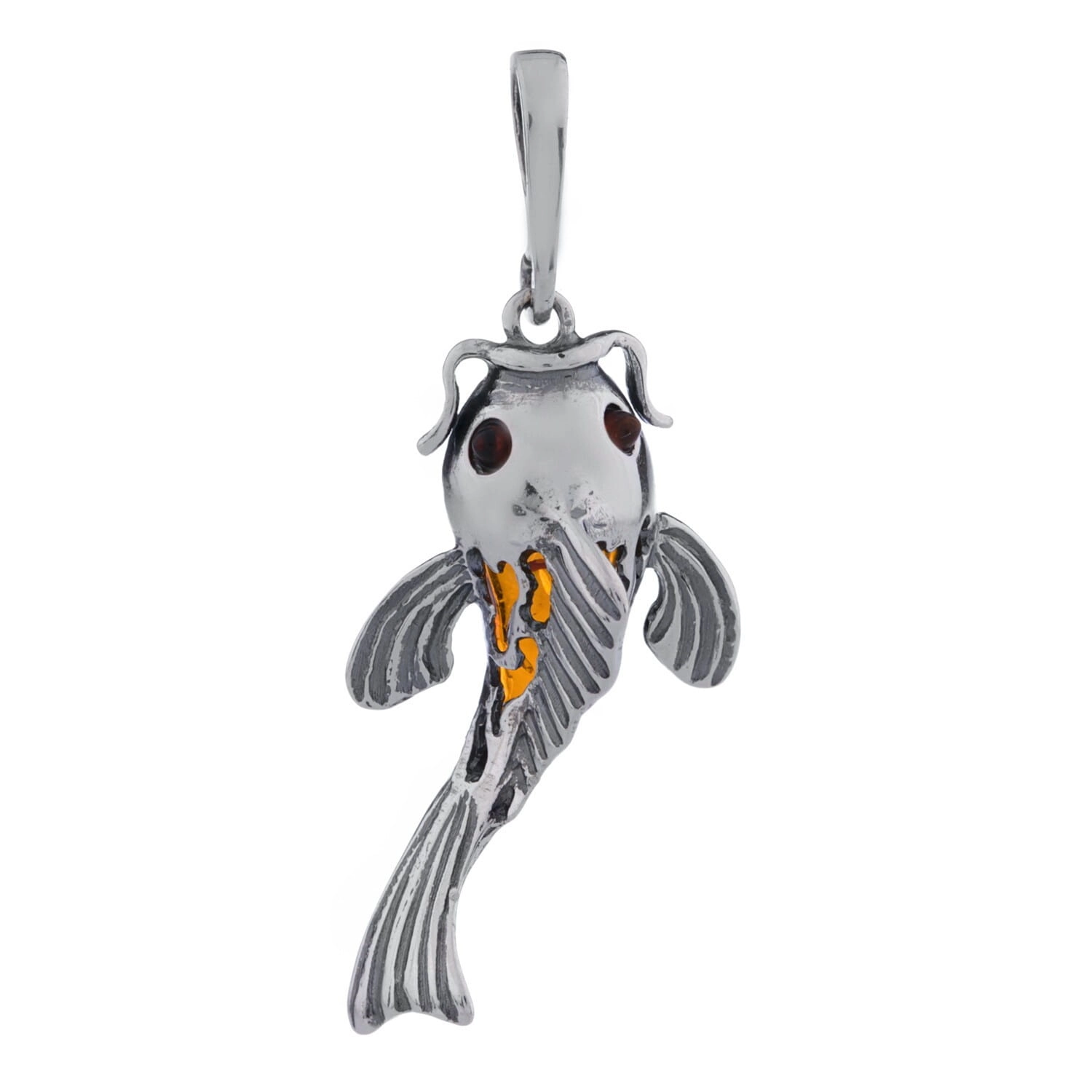 SREBRNY WISIOREK RYBA KOI Z BURSZTYNEM