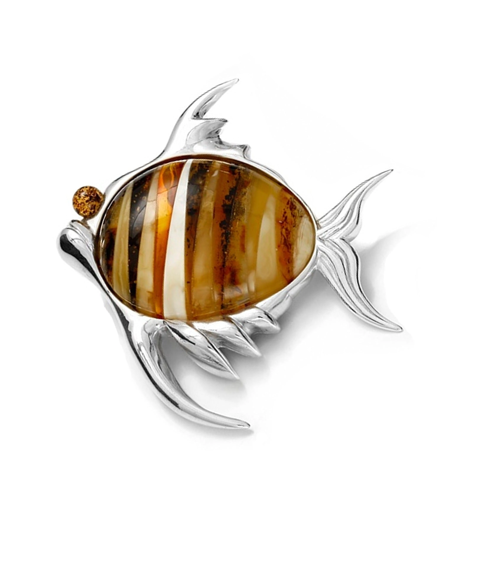 SREBRNY WISIOREK RYBA Z BURSZTYNEM