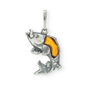 SREBRNY WISIOREK RYBA Z BURSZTYNEM