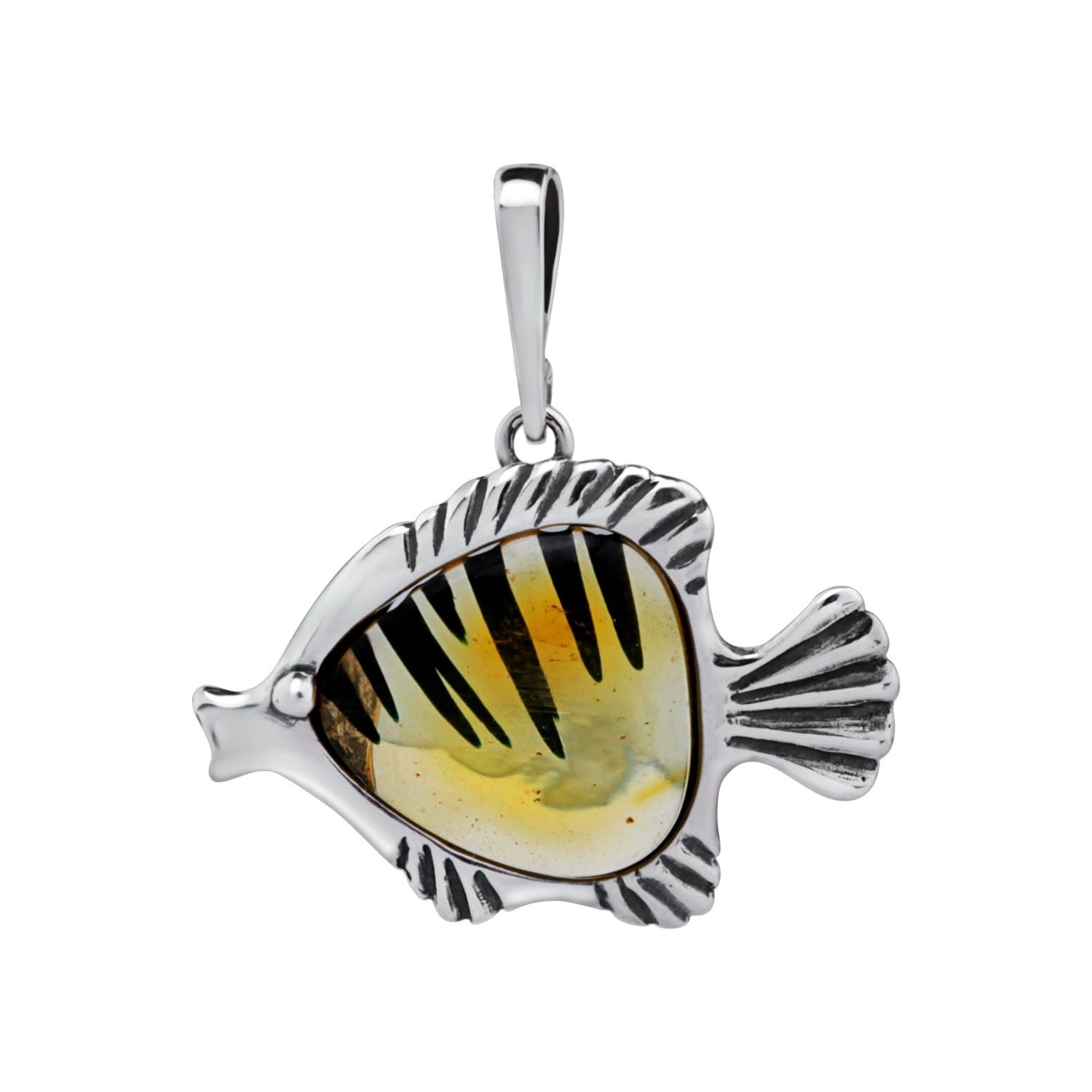 SREBRNY WISIOREK RYBKA Z BURSZTYNEM