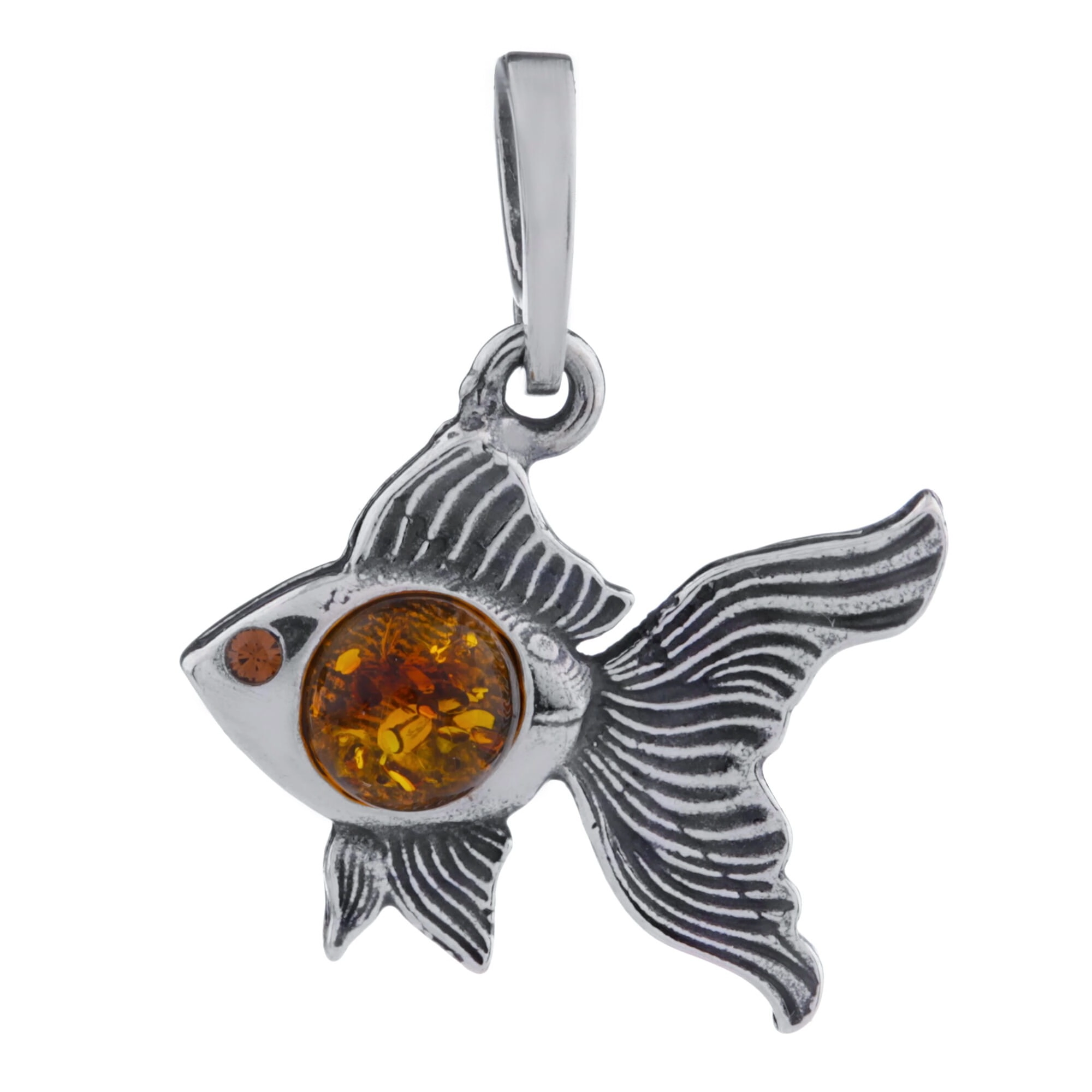 SREBRNY WISIOREK RYBKA Z BURSZTYNEM