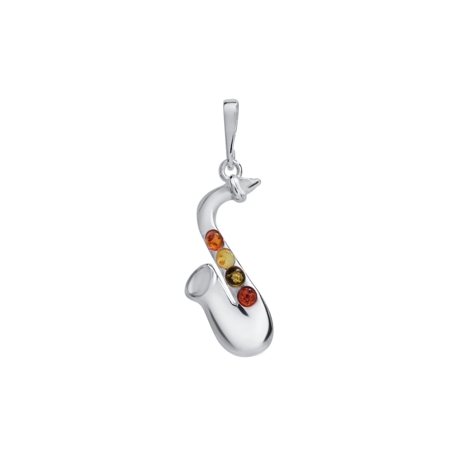 SREBRNY WISIOREK SAKSOFON Z BURSZTYNEM