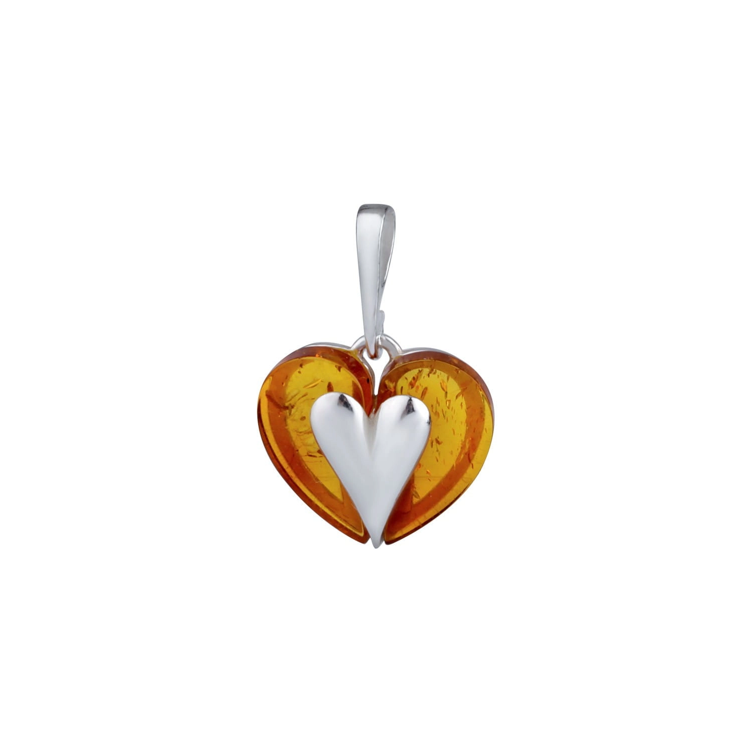 SREBRNY WISIOREK SERCE Z BURSZTYNEM